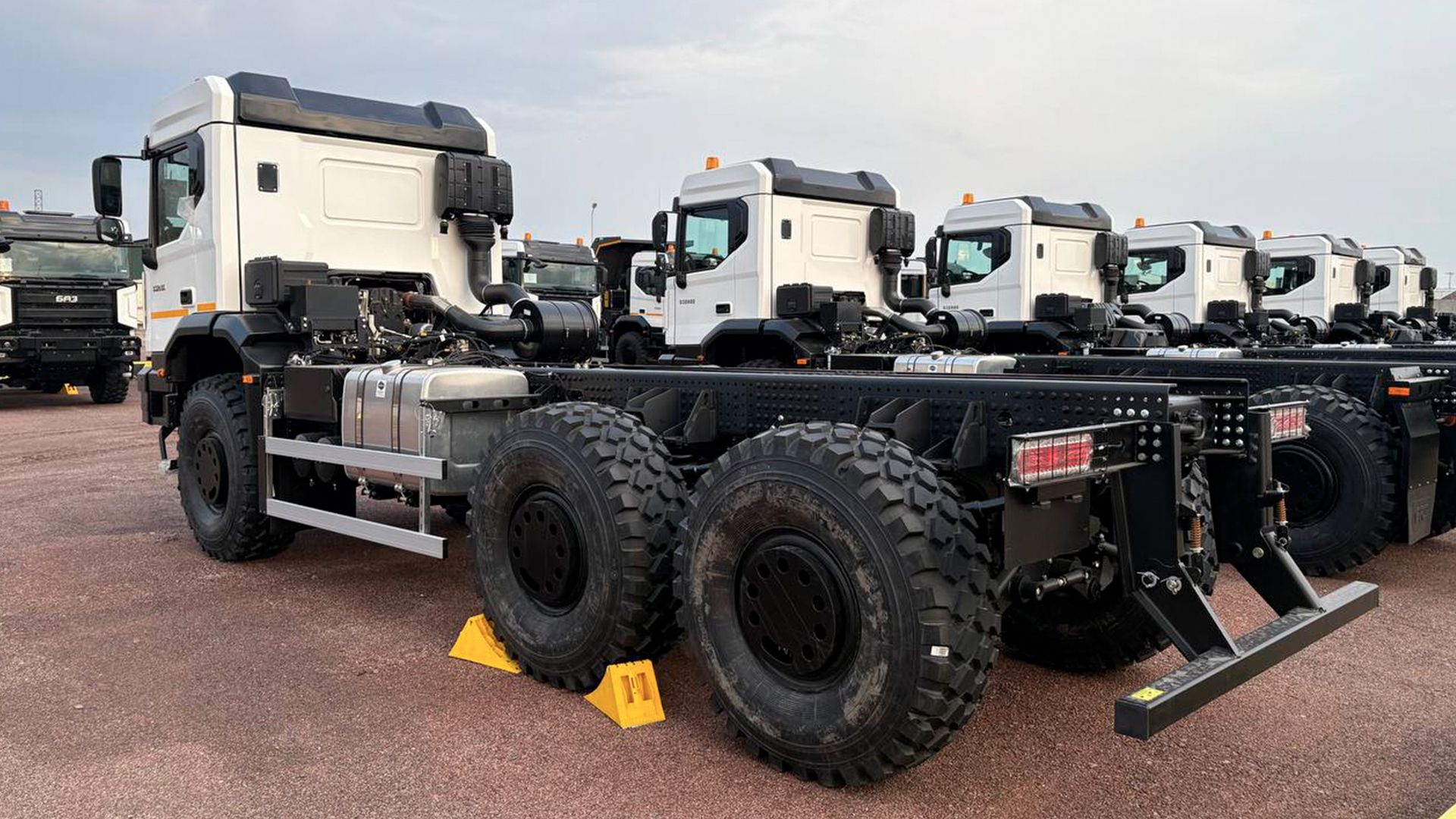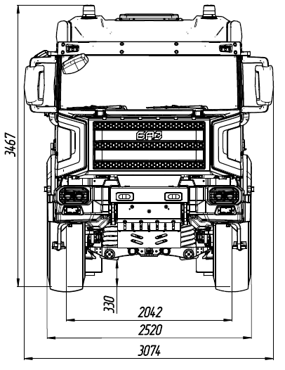 - Односкатная ошиновка на всех осях, 16R20.