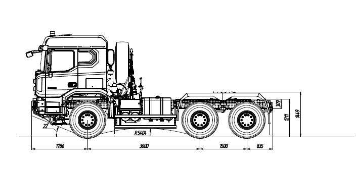 - Колесная база 5350 + 1500 мм.